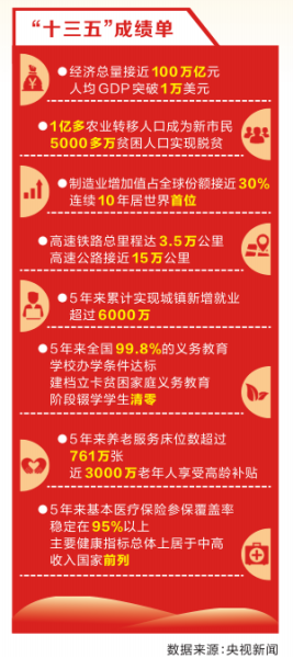 新发展目标。确立“十四五”时期发展目标是继往开来做好“两个一百年”奋斗目标有机衔接的必然。全面建成小康社会胜利在望,我们既要充分总结和肯定“十三五”时期发展取得的历史性成绩和决定性成就,更要锚定2035年远景目标,对未来五年发展目标提出新要求,让我们对开启全面建设社会主义现代化国家新征程的首个五年有新的期待。具体来看,未来五年发展目标体现在“六个新”,即经济发展取得新成效、改革开放迈出新步伐、社会文明程度得到新提高、生态文明建设实现新进步、民生福祉达到新水平和国家治理效能得到新提升。“六个新”充分体现了把新发展理念贯穿发展全过程全领域、突出了高质量发展这个主题要求、落实了以人民为中心的发展思想,使我们扎实推进“十四五”规划发展工作有了新的奋斗目标。
