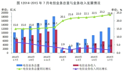 7月份,我国三家基础电信企业运行稳中趋缓,收入增速继续小幅回落。