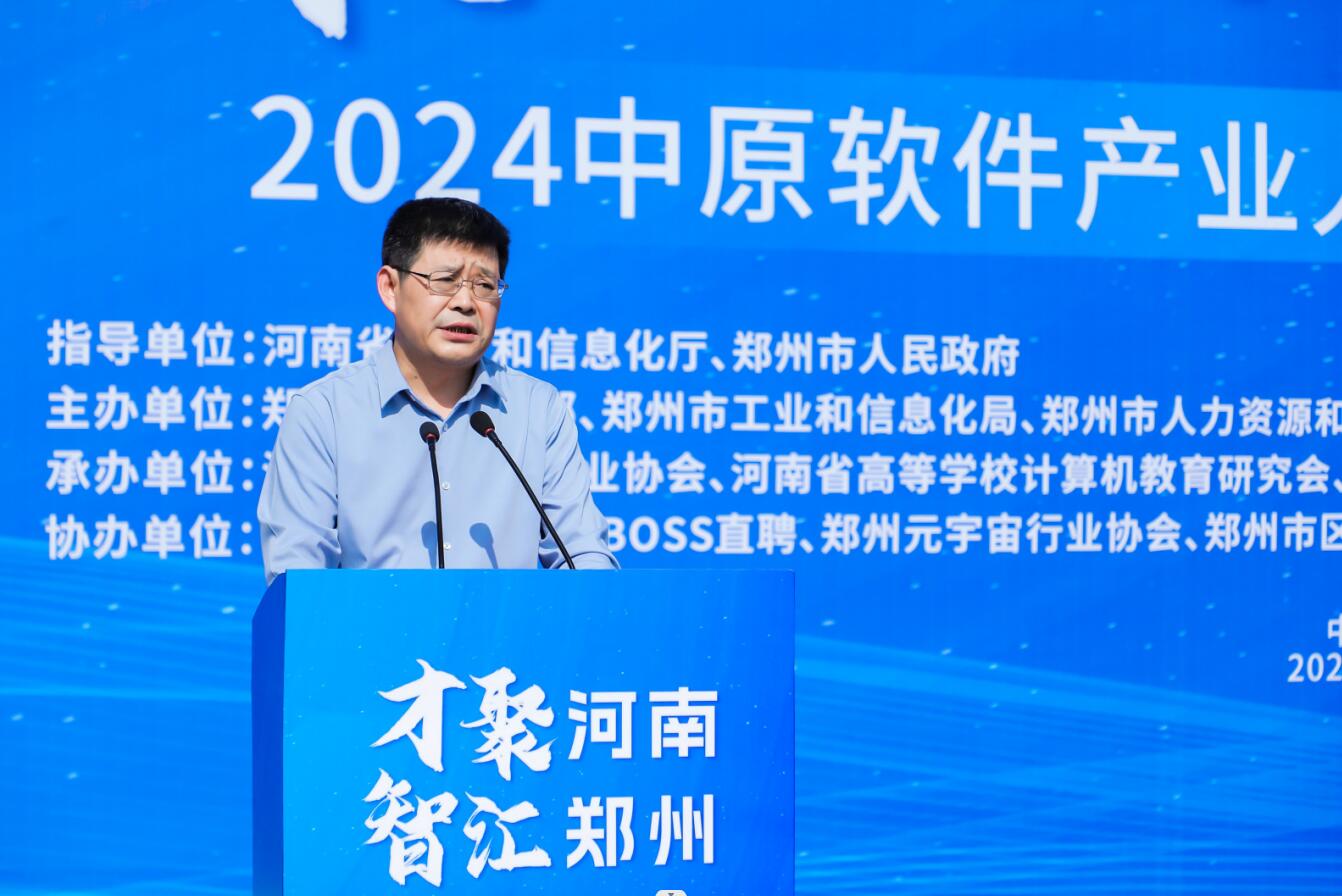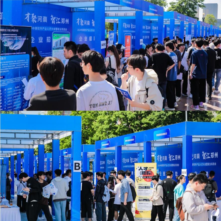 2024年4月26日,以“才聚河南 智汇郑州”为主题的2024中原软件产业人才大会暨就业双选会在郑州召开。本次大会由河南省工业和信息化厅、郑州市人民政府指导,郑州市委组织部、郑州市工业和信息化局、郑州市人力资源和社会保障局、郑州经济技术开发区管委会主办,河南省高等学校计算机教育研究会、郑州市信息化促进会等多家单位共同承办,为求职招聘双方搭建“豫见”平台。郑州大学、河南大学、华北水利水电大学、河南理工大学、河南工业大学、河南农业大学、河南科技大学、河南财经政法大学、信阳师范大学等69所省内高校应届毕业生、社会求职人员近10000人,近500家企业报名参会,进行双选交流。